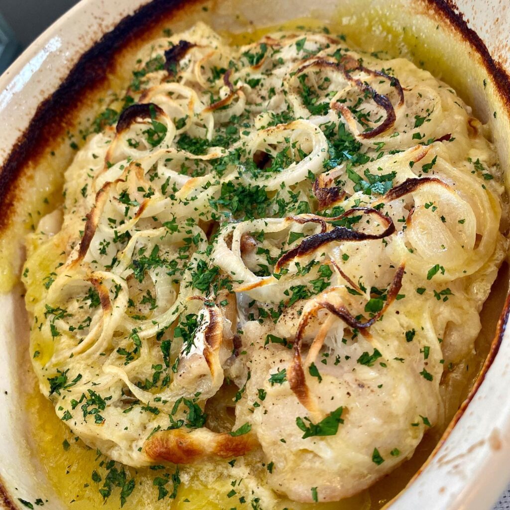 - Cozimento: A versão original pede que os bifes sejam fritos, mas nós optamos por assá-los para uma opção mais saudável. Asse no forno até dourar e depois fatie.
